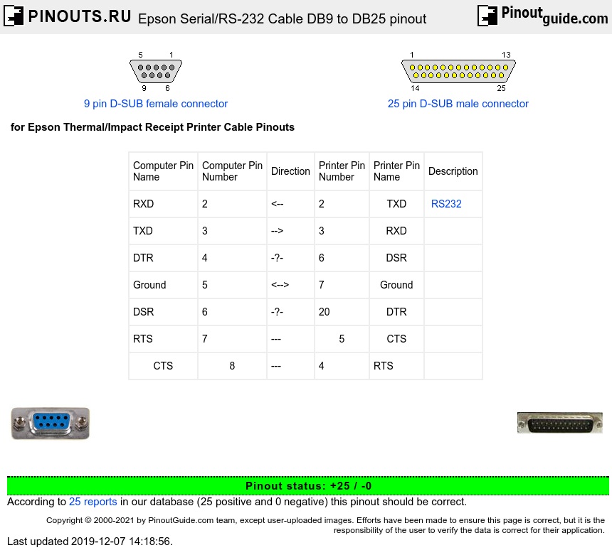 Db9 and db25 male and female pin numbering.